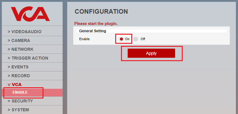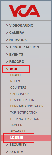 In order to use the VCAedge analytic features you need to add license to the VCAedge plug-in.