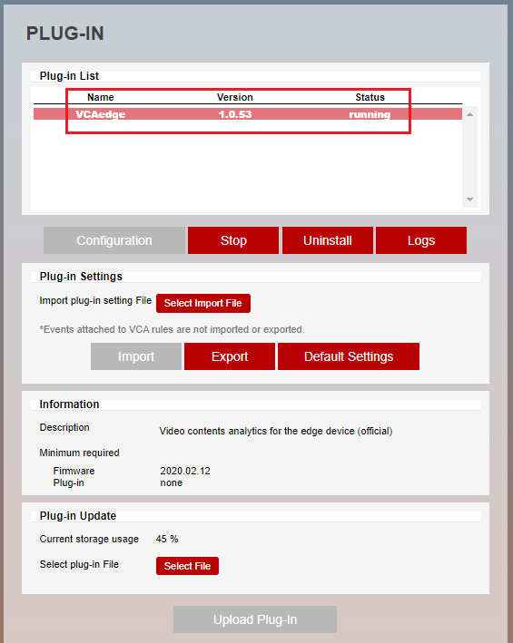 VCAedge Is a plug-in for the camera that provides video analytics.