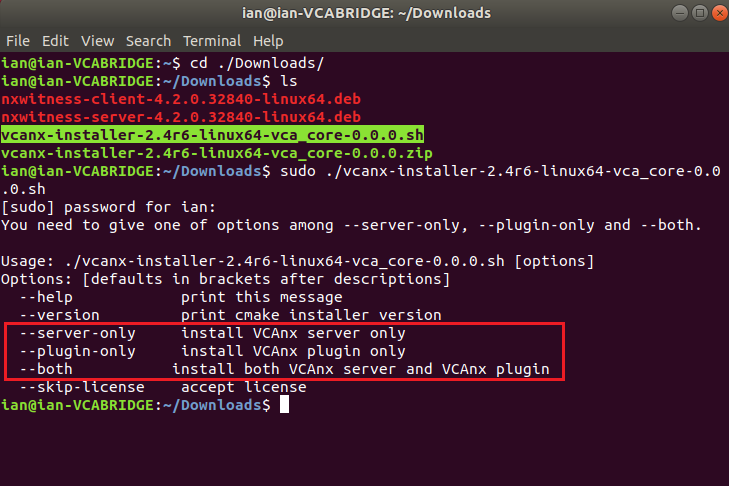 sudo ./vcanx-installer-**VERSION_NUMBER**-linux64-vca_core-**VERSION_NUMBER**.sh –plugin-only