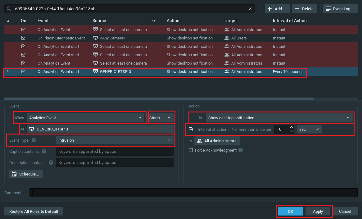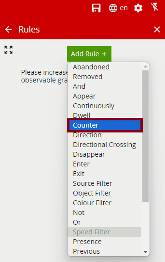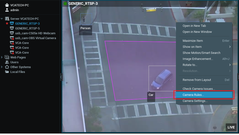 For more information please refer to the section titled Configuring the Camera Rules in Nx Witness in the Nx plug-in for VCAedge documentation.