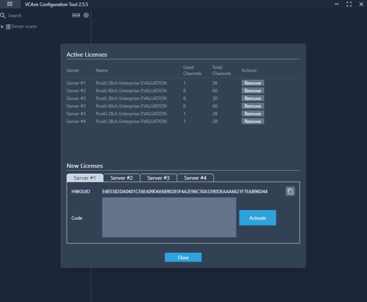 Tabs are created for each server, select the server tab to view the HWGUID and new licenses.