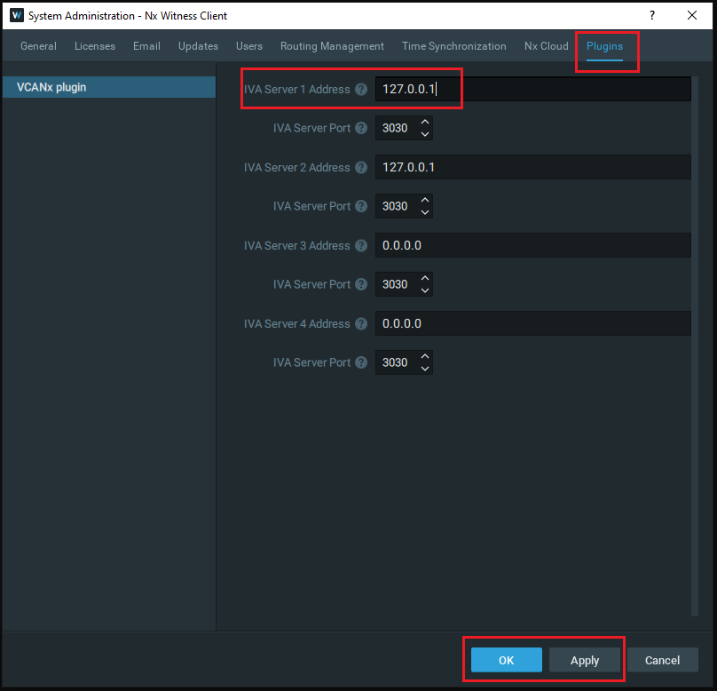 Note: If VCAnx is installed on the same hardware as Nx Witness then you can use 127.0.0.1 or localhost.