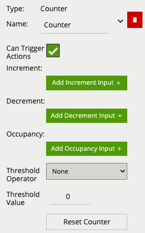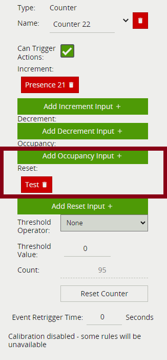 It is possible to reset counters (and other settings) in VCAserver using the HTTP action to send REST API commands. Further details of the REST API commands can be found in the integration documentation.