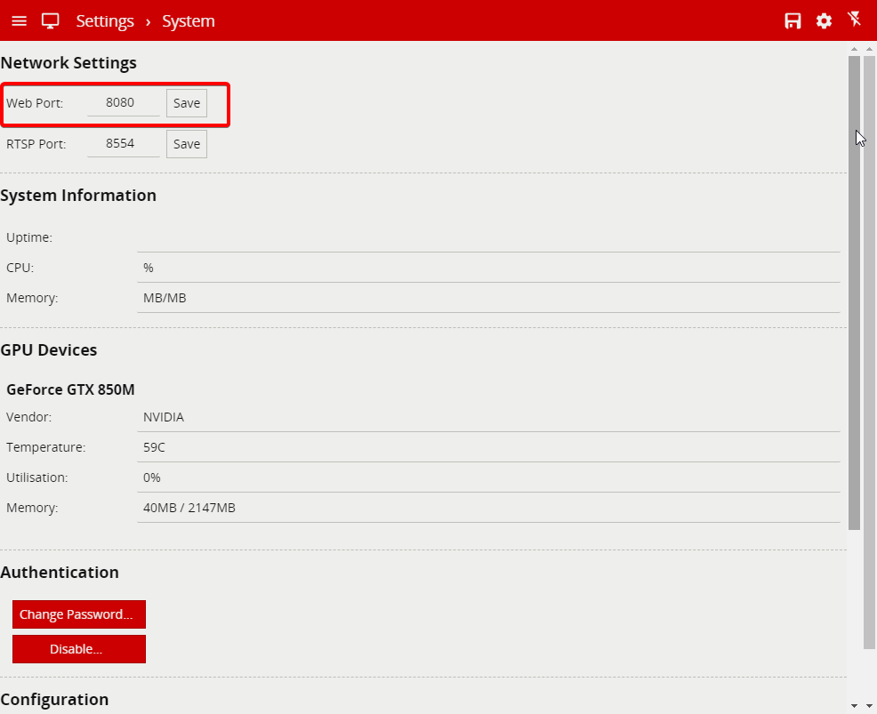 Please refer to the VCAserver documentation for more information on Authentication Settings and Disabling Authentication
