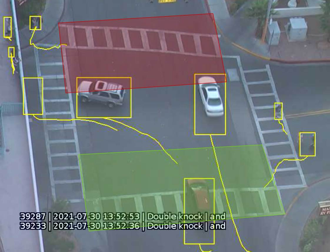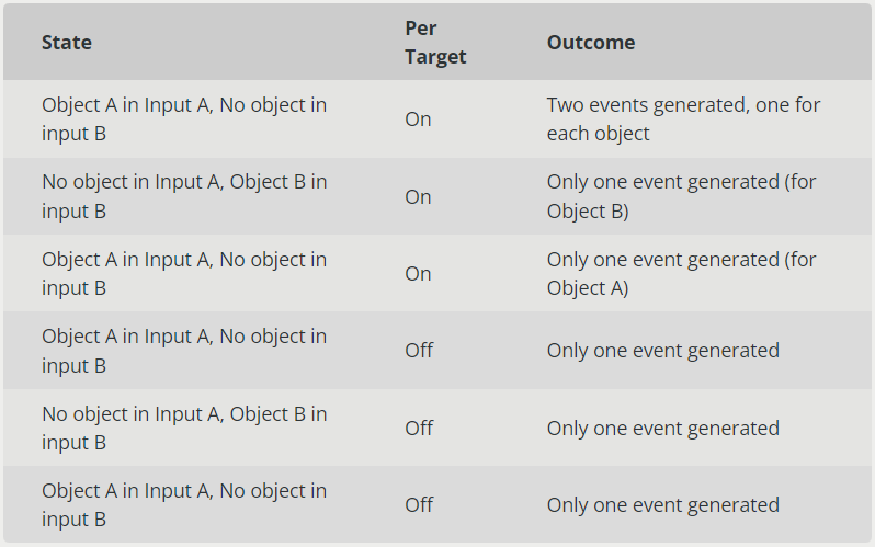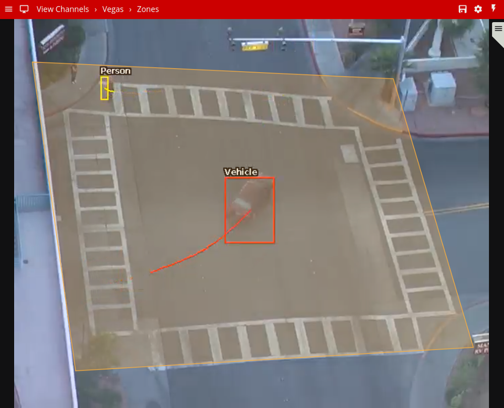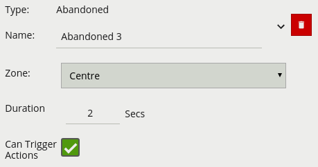 Objects can be present in the first and second zones without triggering alerts, if an object goes from the first zone into the second zone within 5 seconds, an alert will be created.