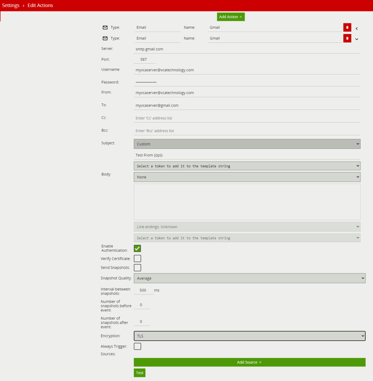 Please refer to the VCAserver documentation for more information on Authentication Settings