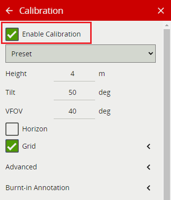 Calibration is required in order for VCAedge to classify objects into different object classes. Once the camera has been calibrated, it can infer real-world object properties such as speed, height and area and classify objects accordingly.