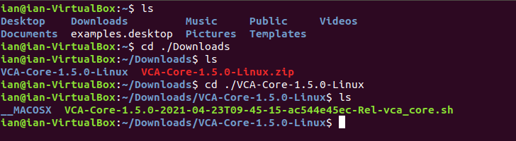 Example: sudo ./VCA-Core-1.5.0-2021-04-23T09-45-15ac544e45ec-Rel-vca_core.sh