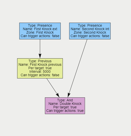 When the object enters into the second zone, an event will trigger ‘Double Knock effect’ as you can see from the example pictured below.