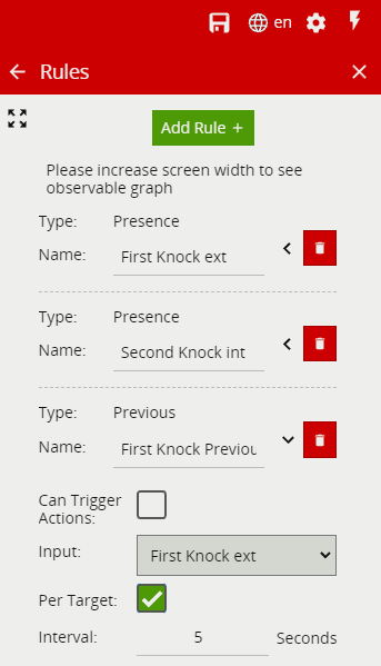 Note: The previous rule will keep the alert active for the defined period of time and allows the double knock rule to work