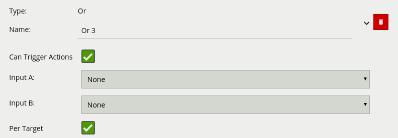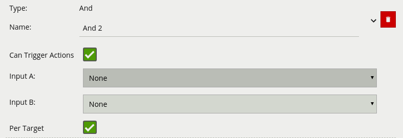 The And Rule is the last link in the chain and is used to compare the states of two different rules, configure the options as shown below.