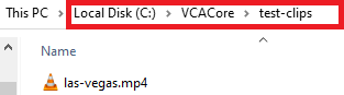 test-clips folder.Windows: C:\VCACore\test-clipsLinux: /var/opt/VCA-Core/test-clipstest-clips folder for Windows / Linux.Windows: C:\VCACore\test-clips